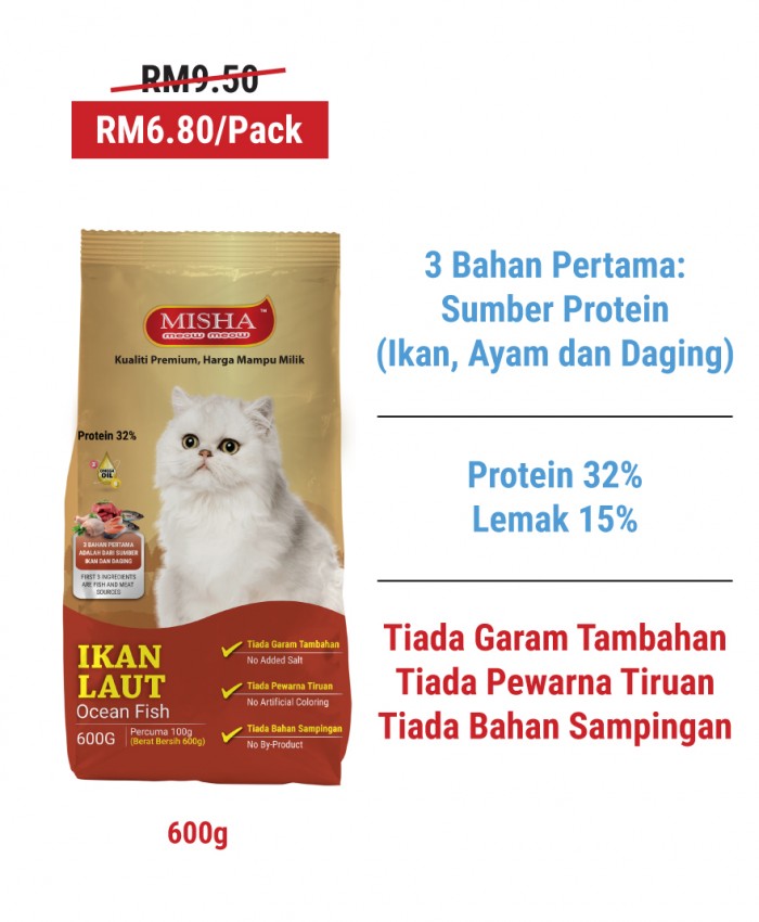 Puan Mila : MISHA Dry Cat Food Ocean Fish 600G