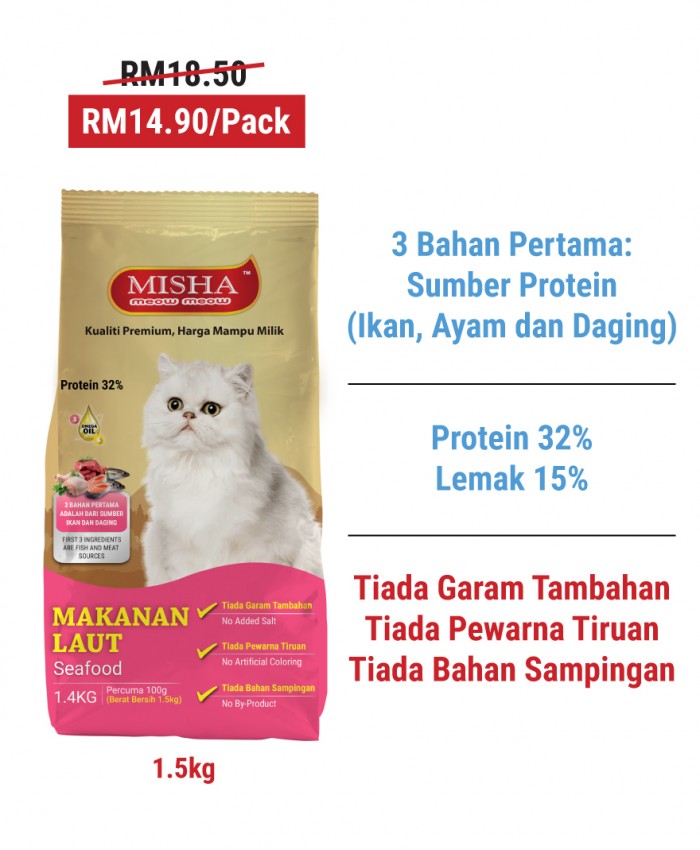 MISHA Dry Cat Food Seafood 10kg (8kg Free 2kg)