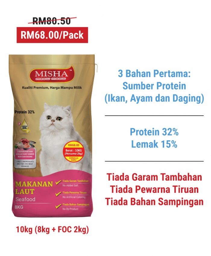 MISHA Dry Cat Food Seafood 10kg (8kg Free 2kg)