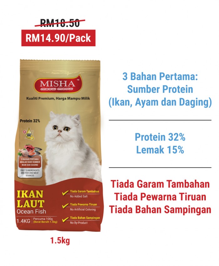 Puan Mila : MISHA Dry Cat Food Ocean Fish 1.5KG